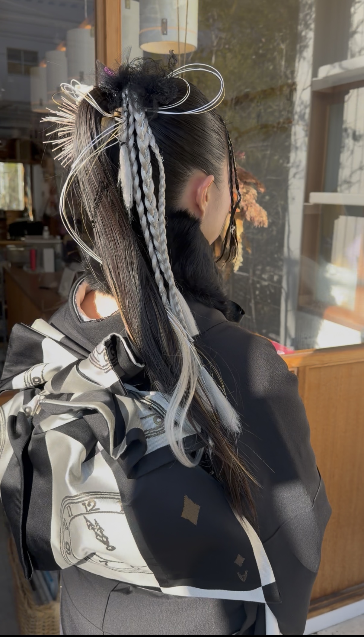 シルバーの編み込みと水引を効かせて、